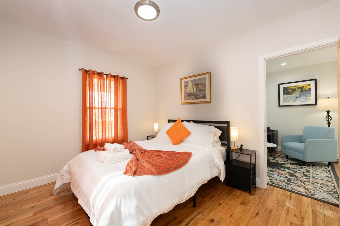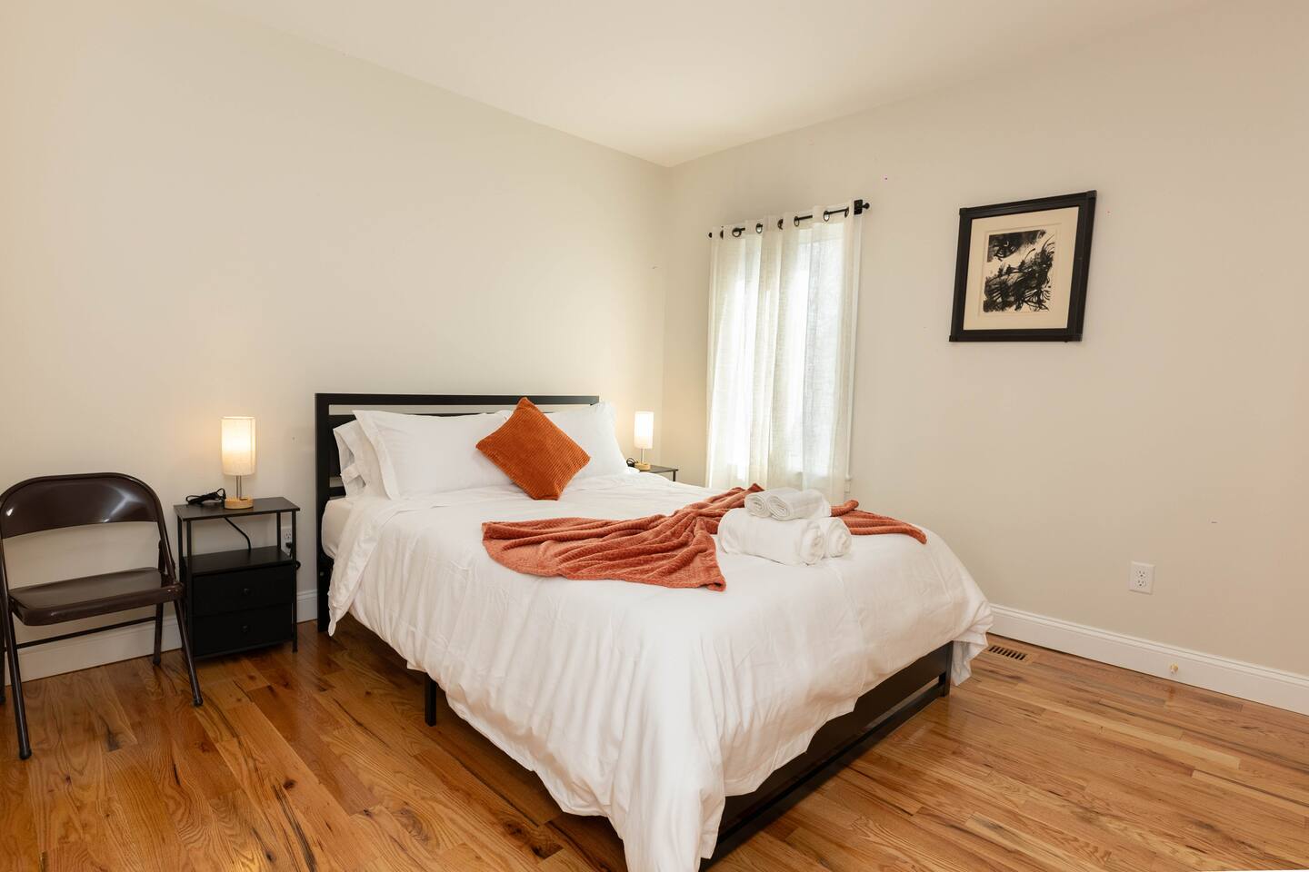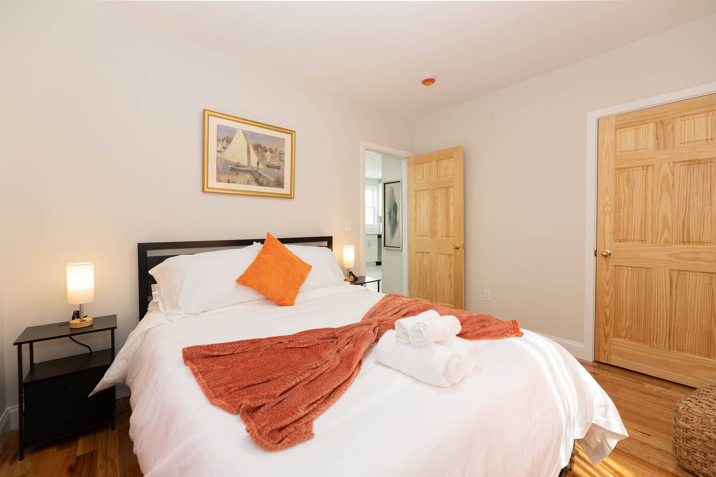Cozy 3-bedroom apartment in a quiet Stamford neighborhood located behind Innis Arden Golf Club and close to Wings Arena. Each bedroom features a queen bed, bedside table with charging station. The master bedroom includes a TV and a small workspace. Guest Access Private entry with convenient self check-in using a keypad. Access code will be provided on the day of arrival. Parking Parking available on premises. Location Close to Old Greenwich, downtown Stamford, beach parks, and train station.