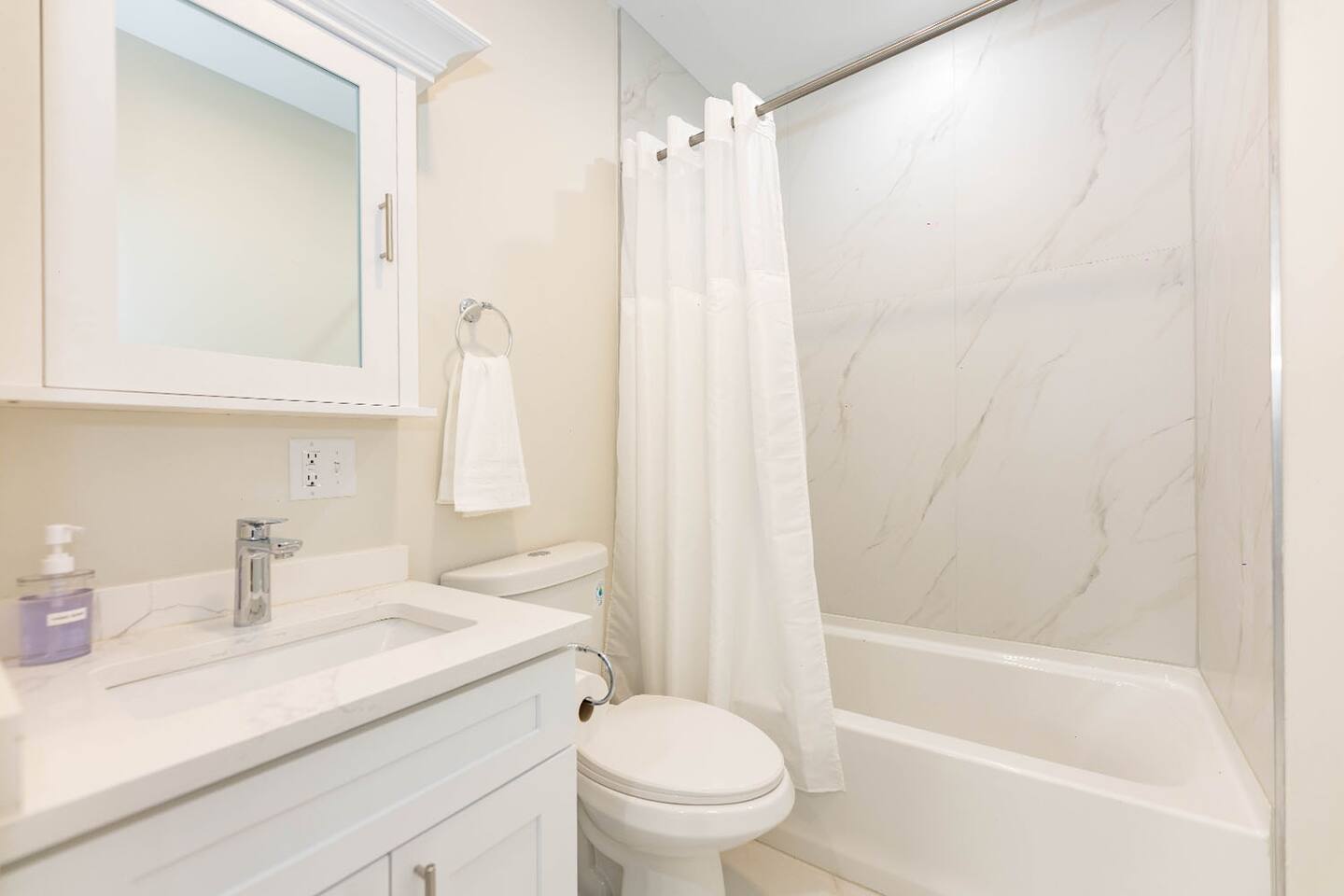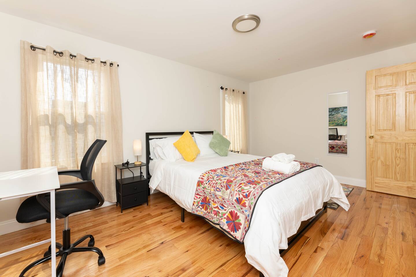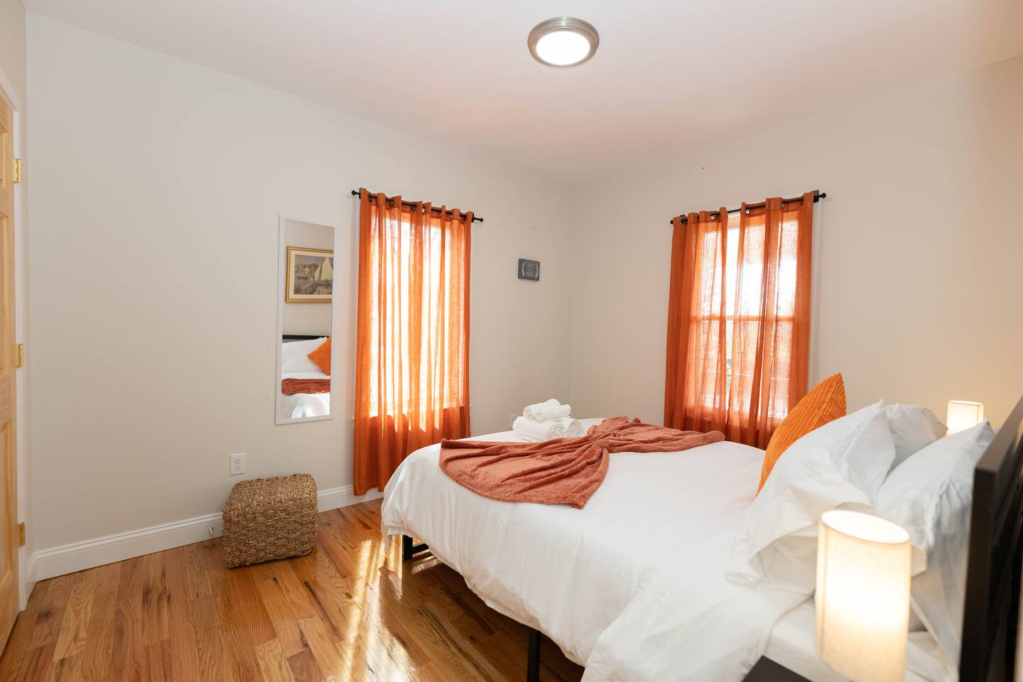 Cozy 3-bedroom apartment in a quiet Stamford neighborhood located behind Innis Arden Golf Club and close to Wings Arena. Each bedroom features a queen bed, bedside table with charging station. The master bedroom includes a TV and a small workspace. Guest Access Private entry with convenient self check-in using a keypad. Access code will be provided on the day of arrival. Parking Parking available on premises. Location Close to Old Greenwich, downtown Stamford, beach parks, and train station.